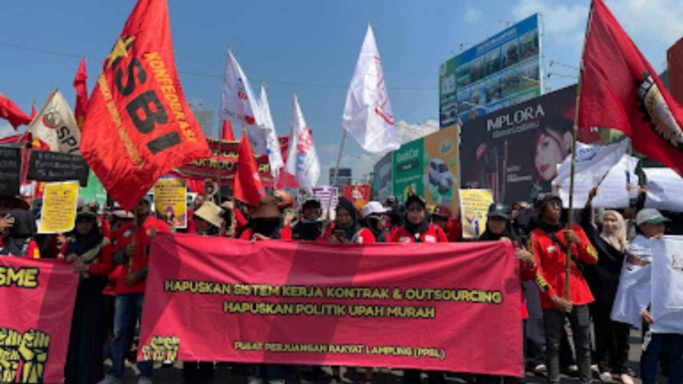 Sejumlah kurang lebih 500 massa aksi dari berbagai lembaga serta organisasi menyuarakan suara mereka melalui aksi May Day 2025. Aksi ini berlangsung di Tugu Adi Pura, Bandar Lampung sejak pukul 10.30 WIB s.d selesai.