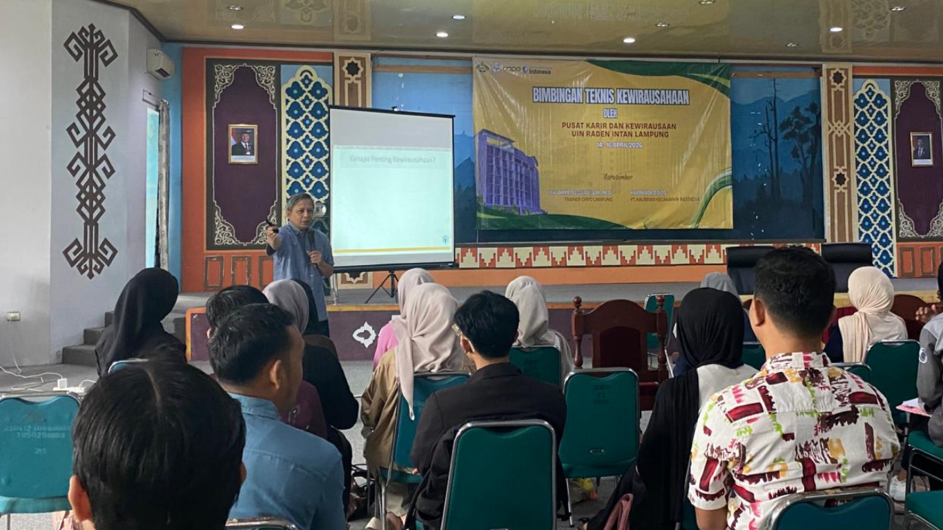 Raden Intan — Tumbuhkan semangat kewirausahaan, Unit Pengembangan Terpadu (UPT) Pusat Pengembangan Kewirausahaan dan Karier (PKK) Universitas Islam Negeri Raden Intan Lampung (UIN RIL), adakan Bimbingan teknik (Bimtek) kewirausahaan. (Rabu, 15/04/26).